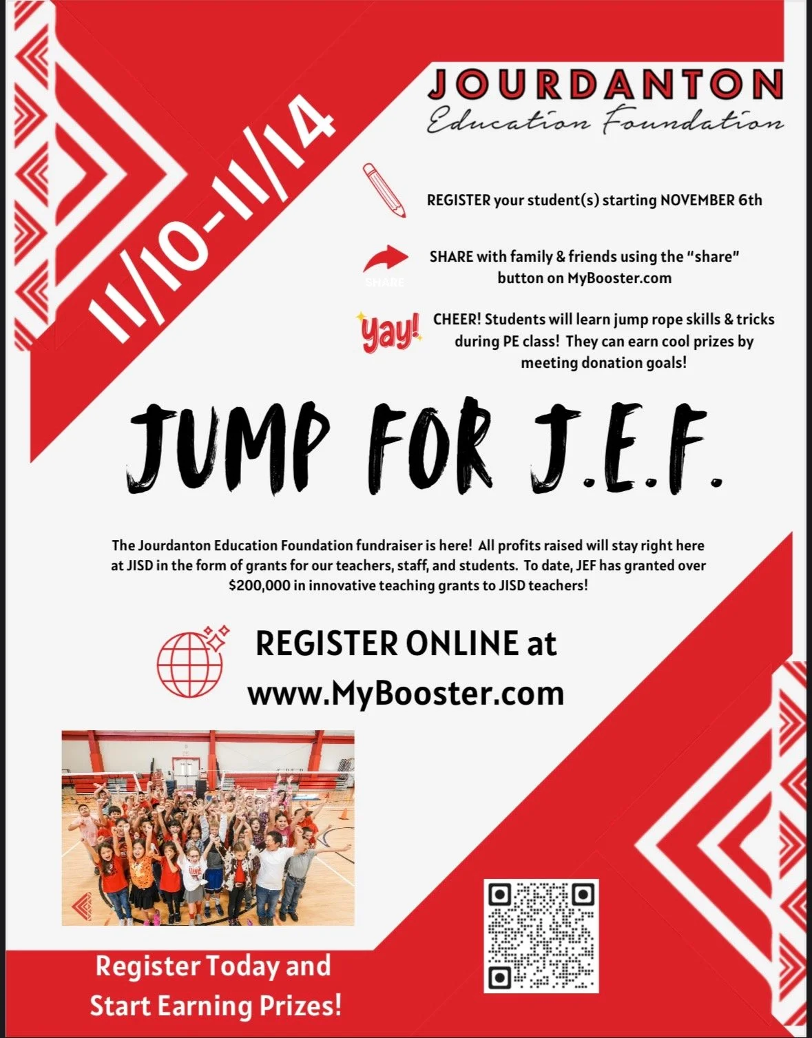Last year JUMP for JEF raised OVER $20,000 that STAYED AT JISD!! Other fundraisers split the proceeds with schools. We give 100% back. Let’s make JUMP for JEF another HUGE SUCCESS!
